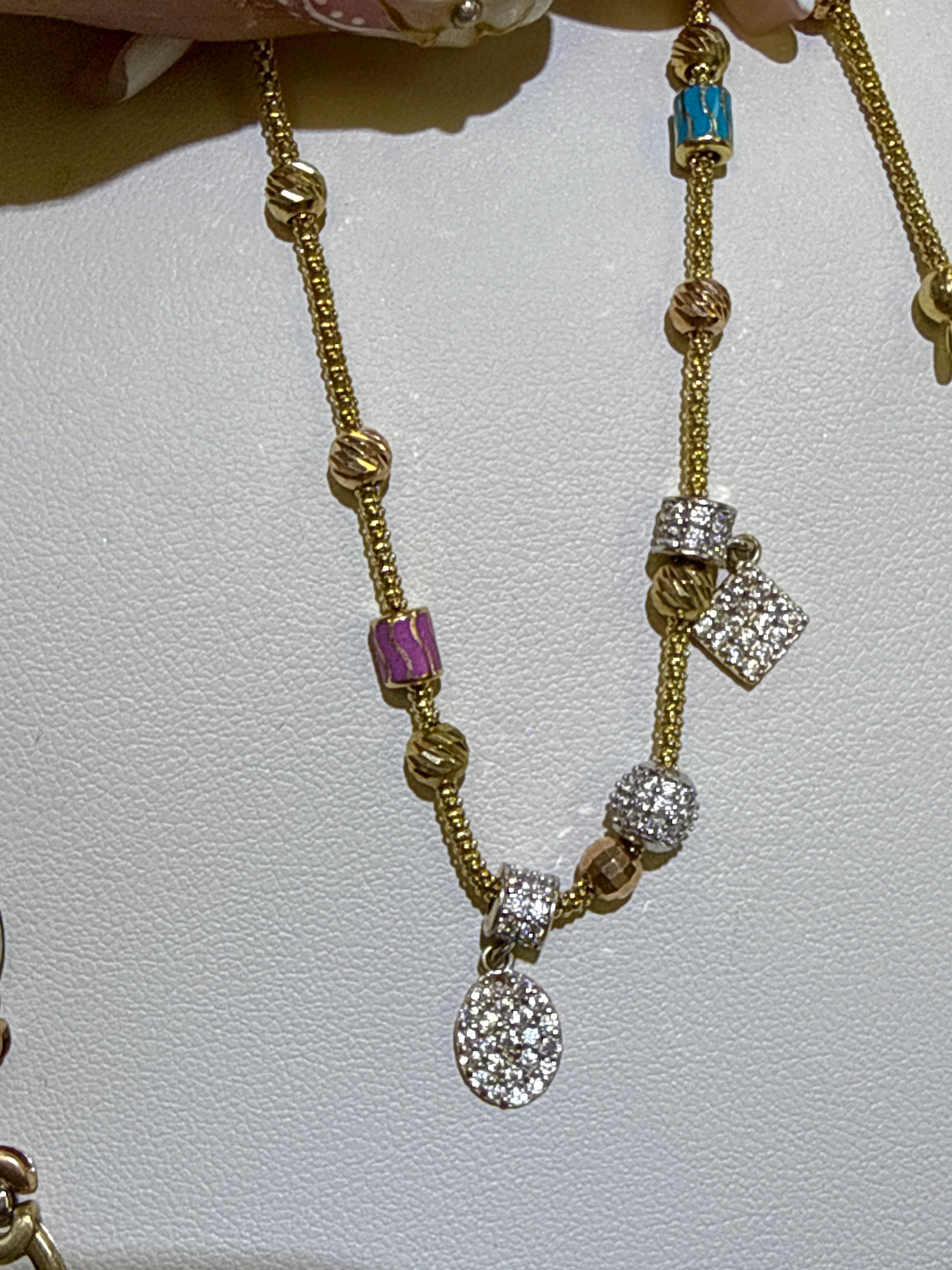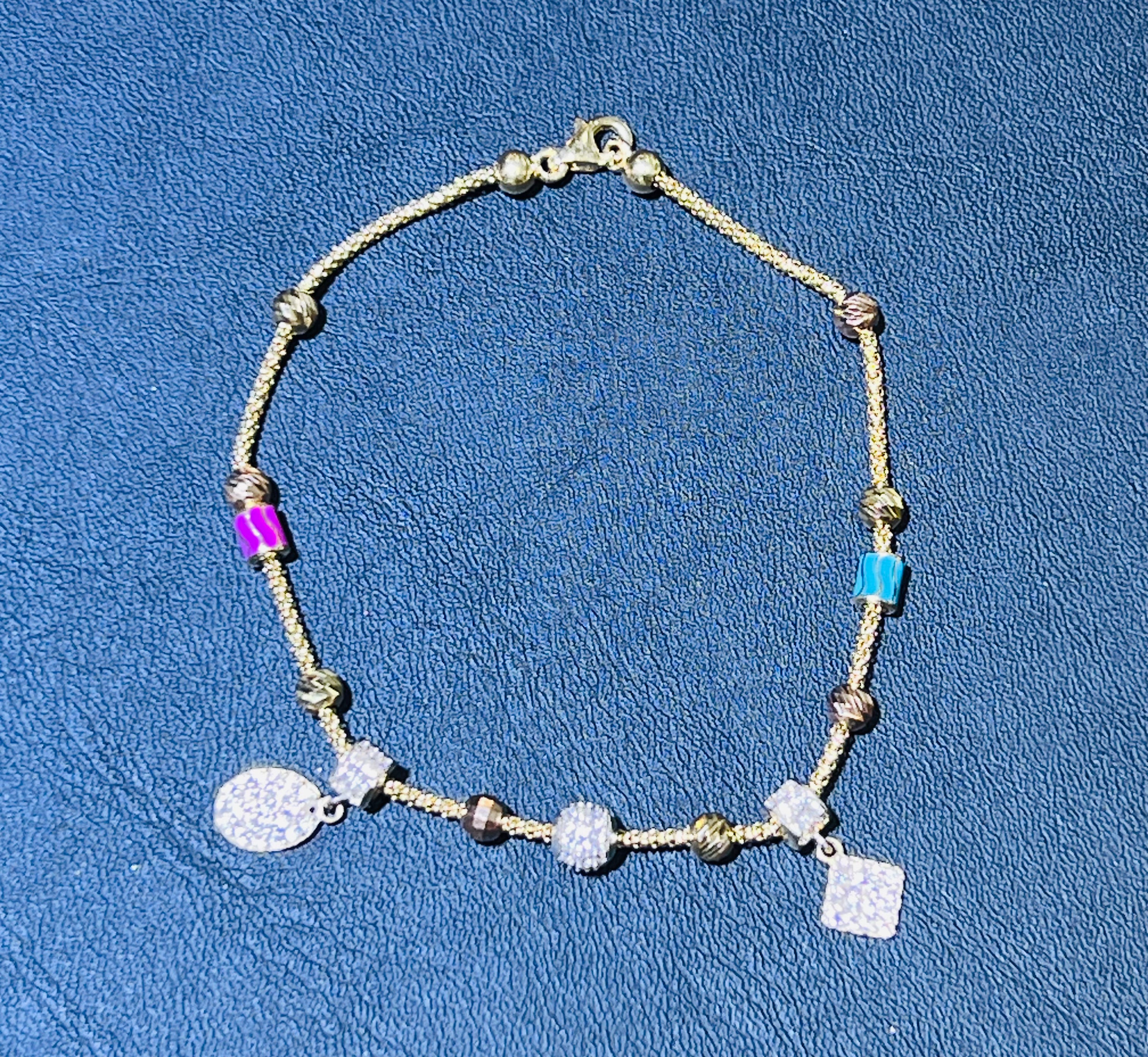14k color blue and pink stone bracelet hanging