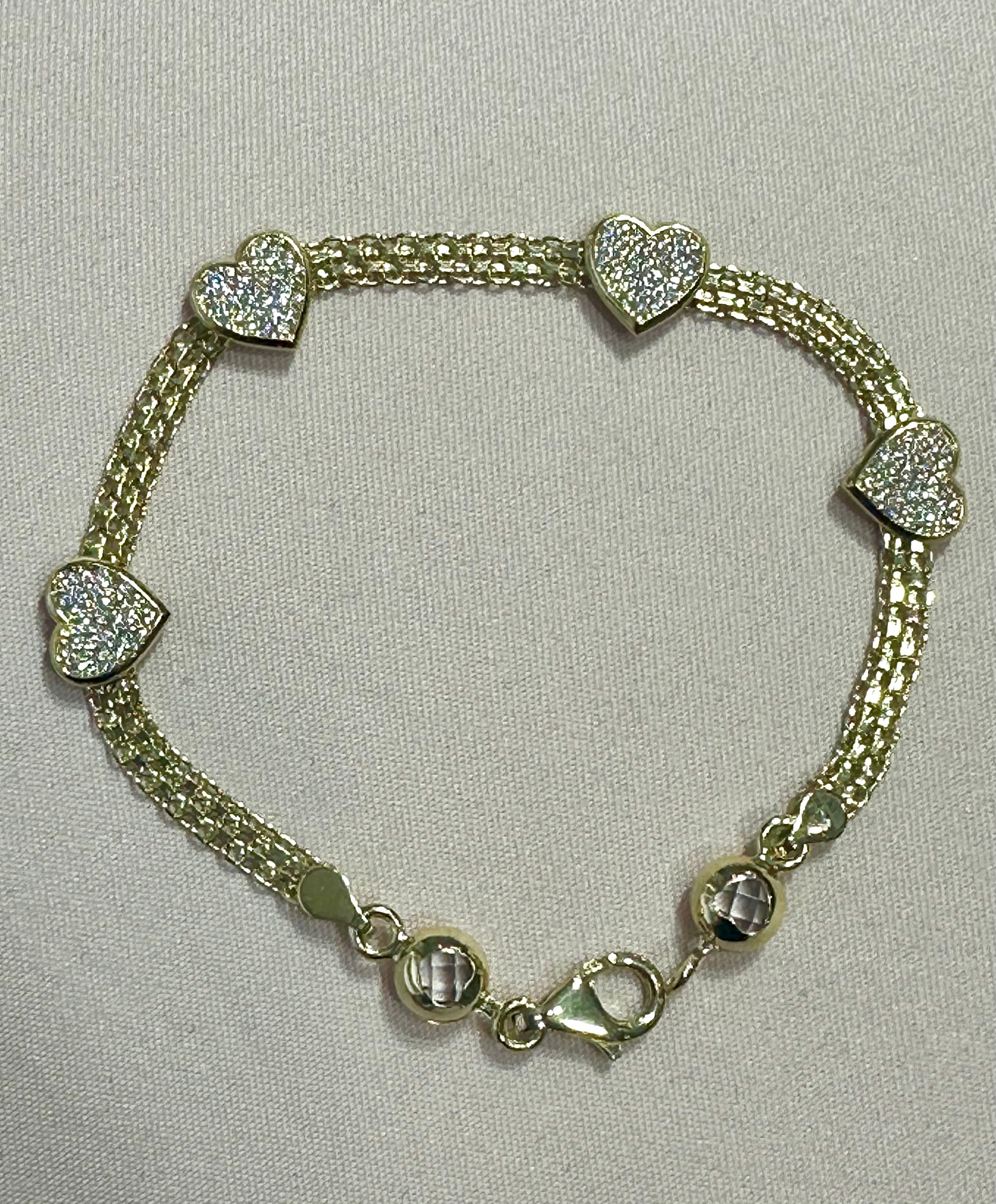 14k heart bracelet with stones 7”