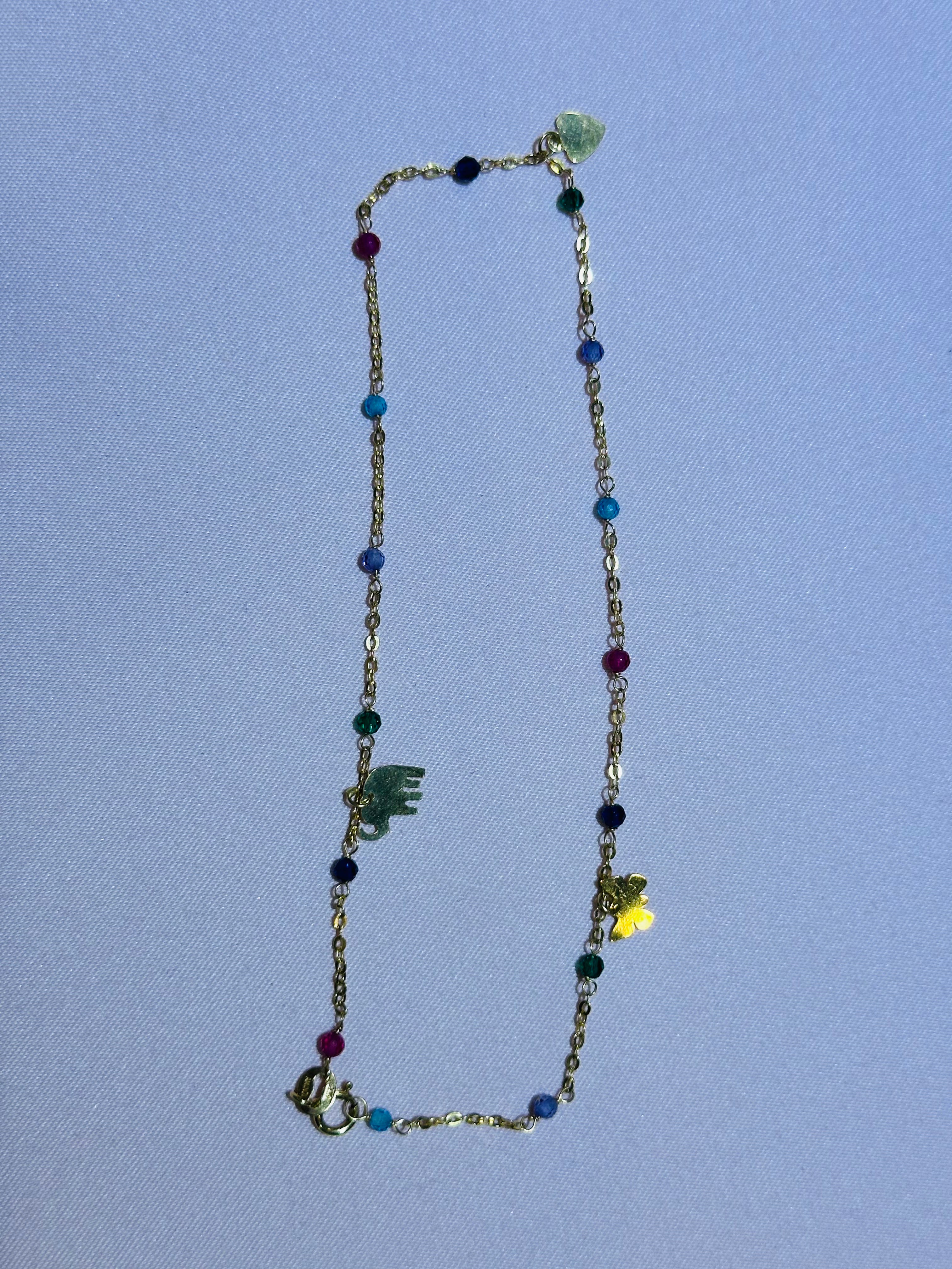 14k multi-colored stone ankle bracelet 10in.