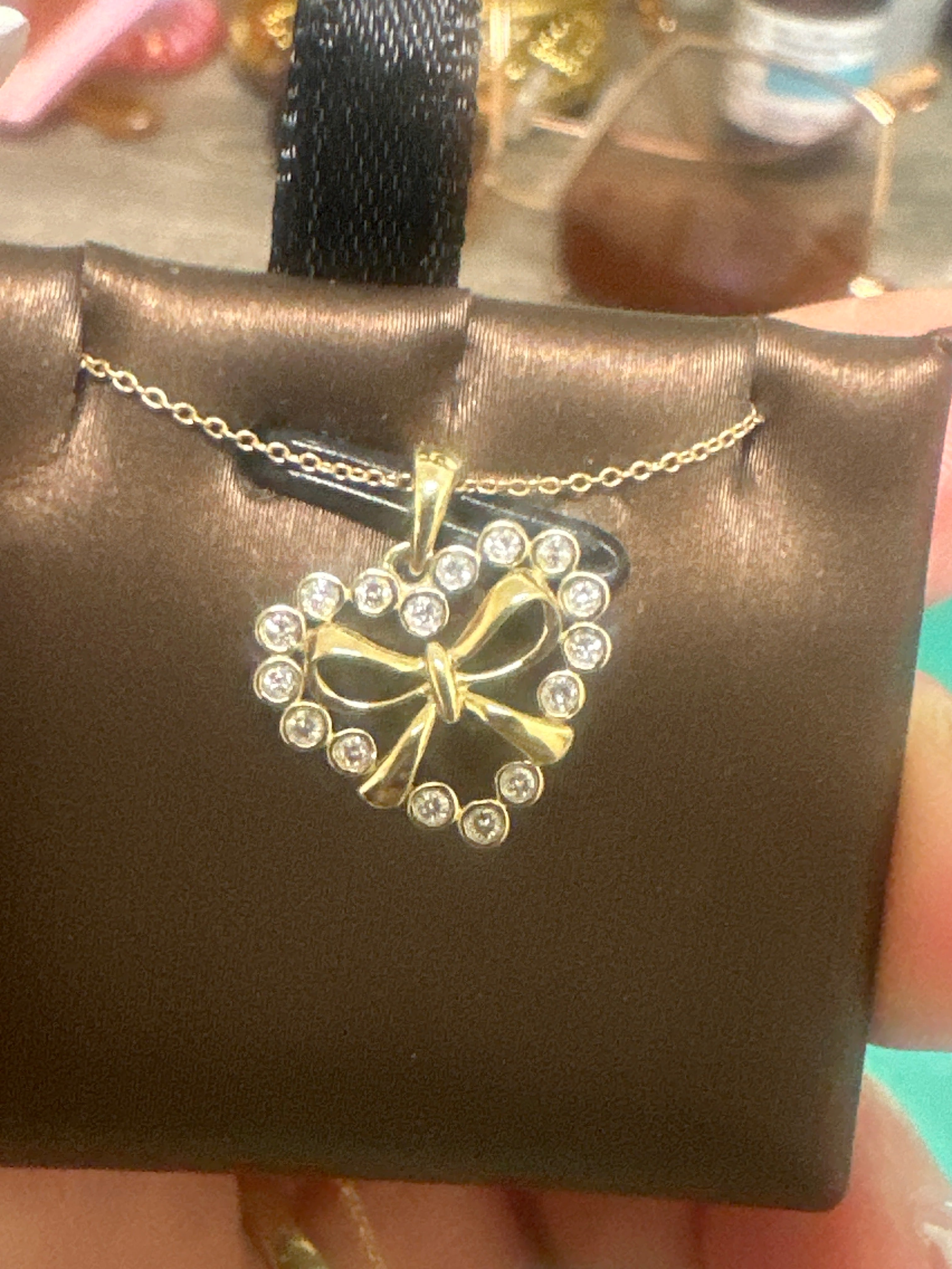 14k necklace with diamond 0.13ct heart bow coquette