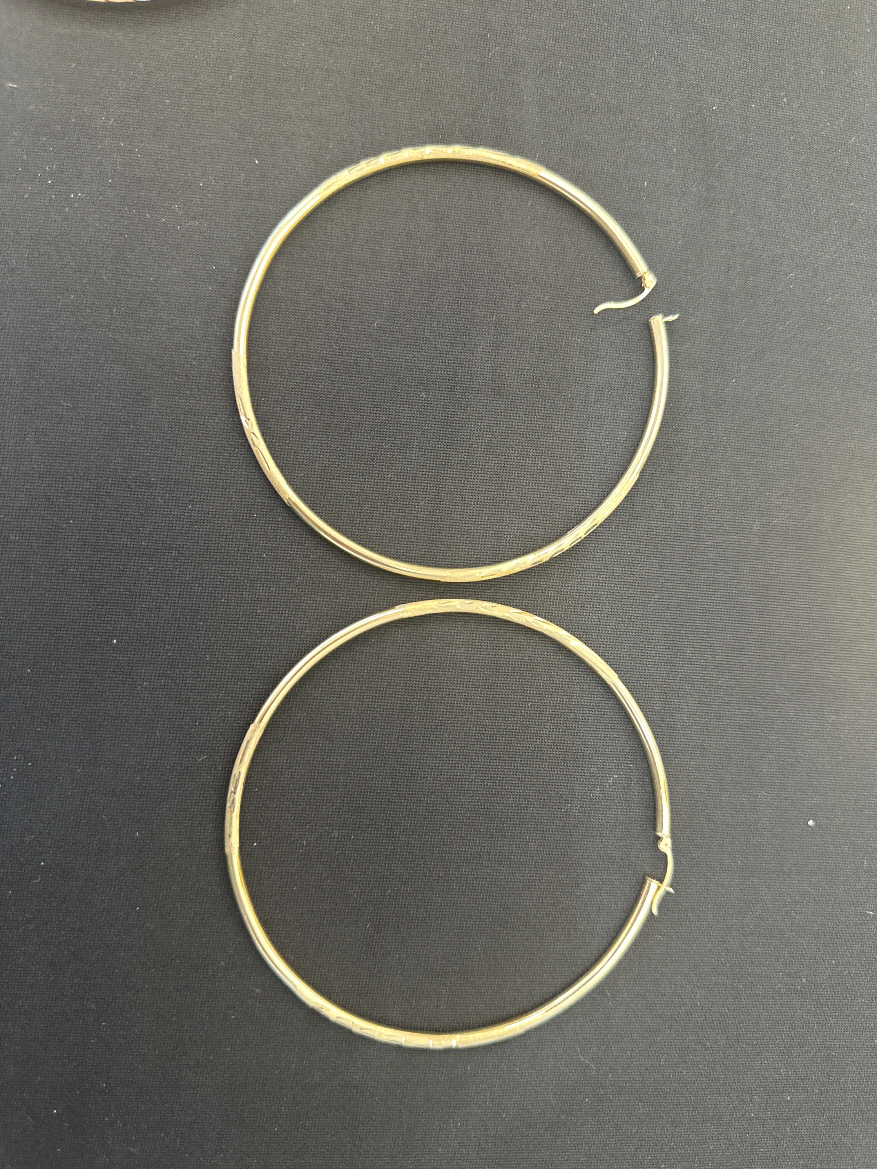 14k Earring big hoop diamond cut 3 1/2 mm