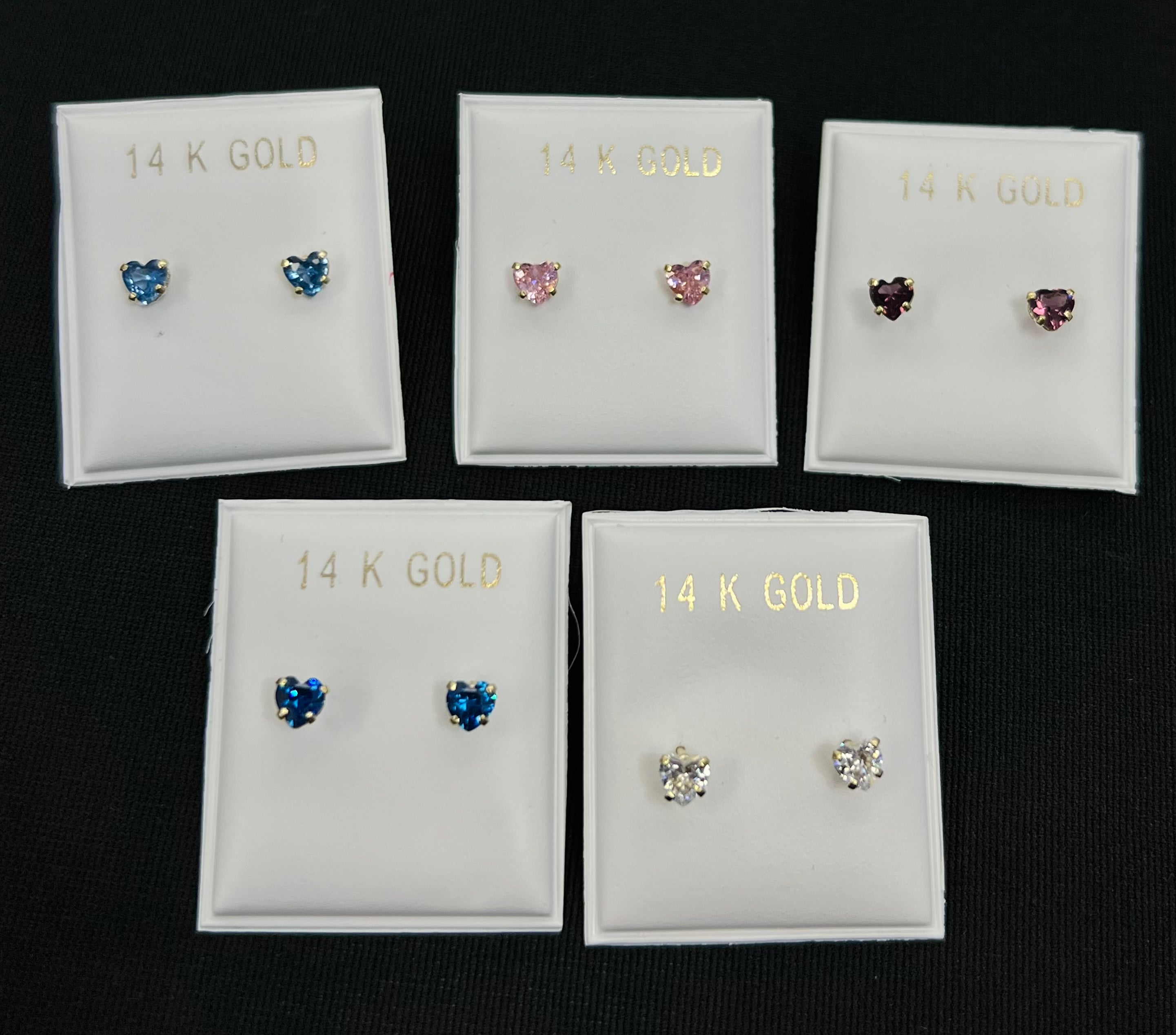 14k Baby and ladies colored heart stone earring (call for available colors) ($40 each)