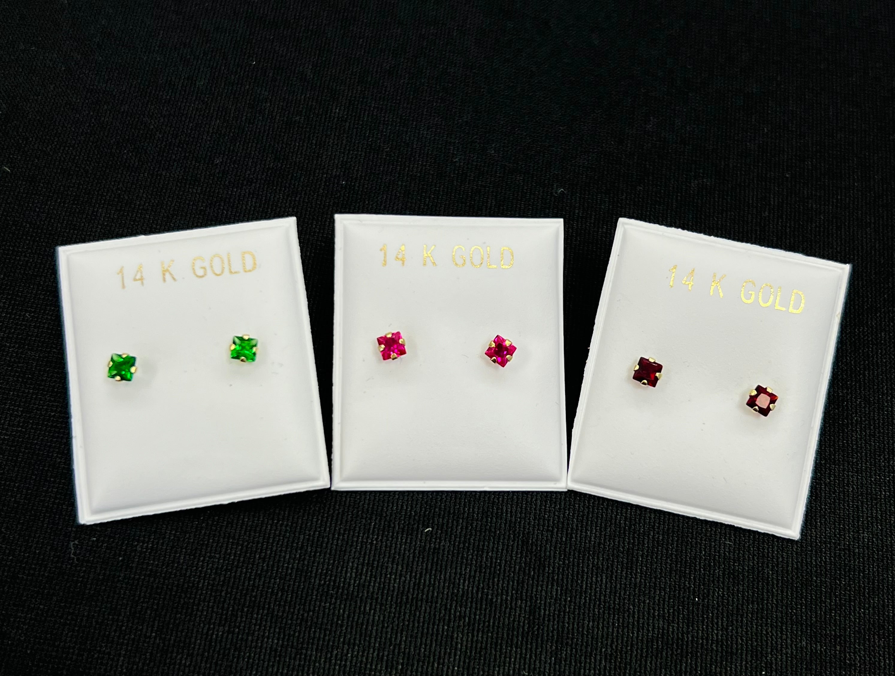 14k Baby and ladies colored square stone earring (call for available colors) ($40 each)