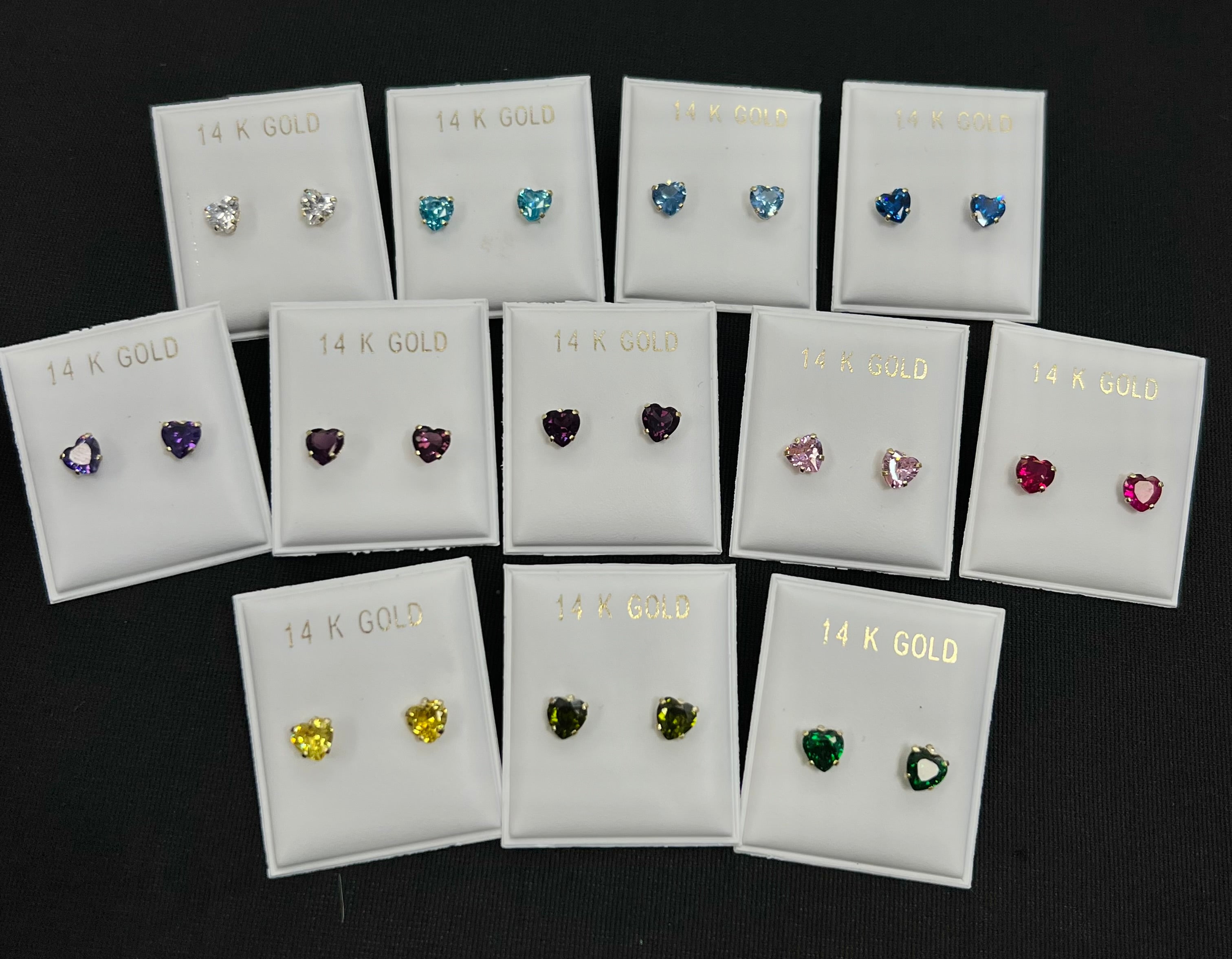 14k Baby and ladies colored heart stone earring (call for available colors) ($55 each)