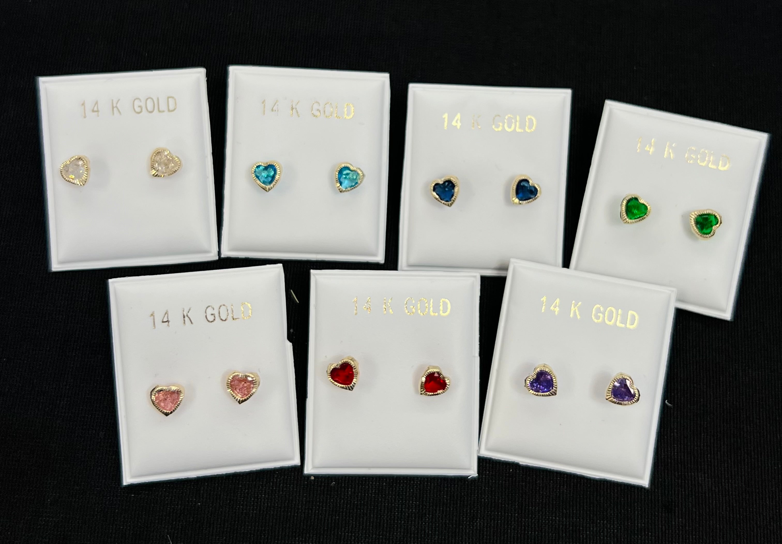 14k Baby and ladies colored heart stone earring (call for available colors) ($55 each)