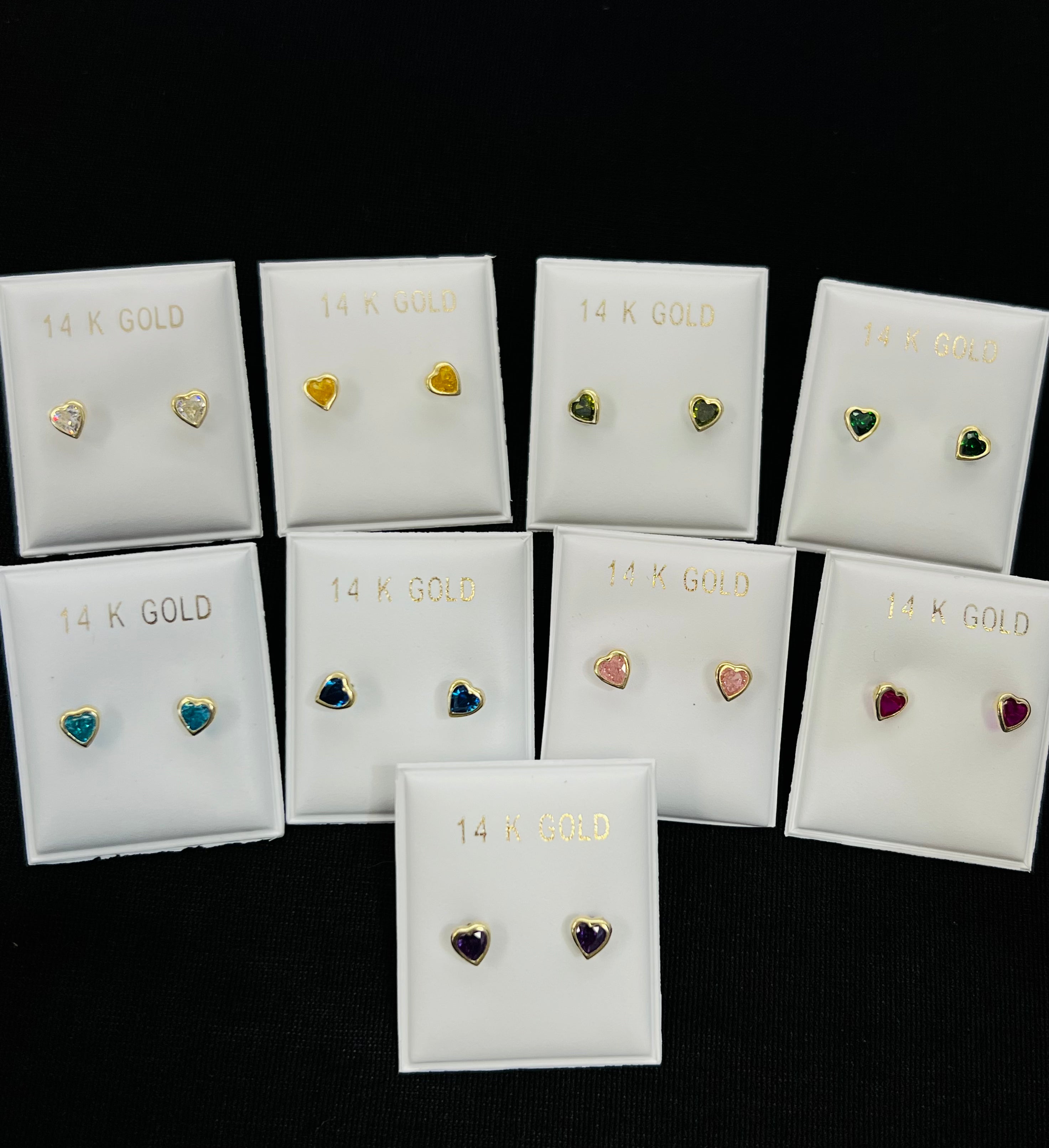 14k Baby and ladies colored heart stone earring (call for available colors) ($55 each)