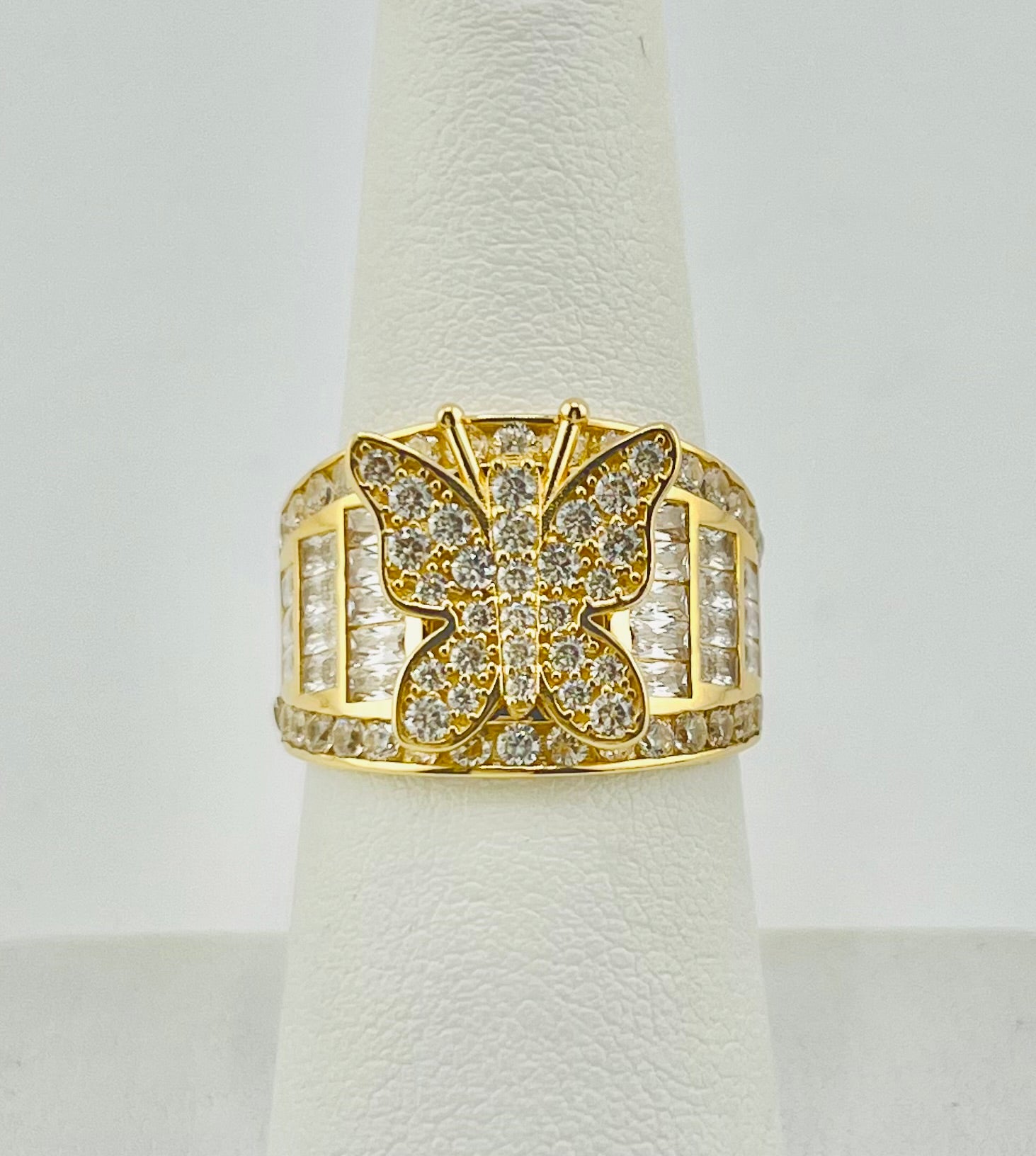 14k Butterfly ring with many stones