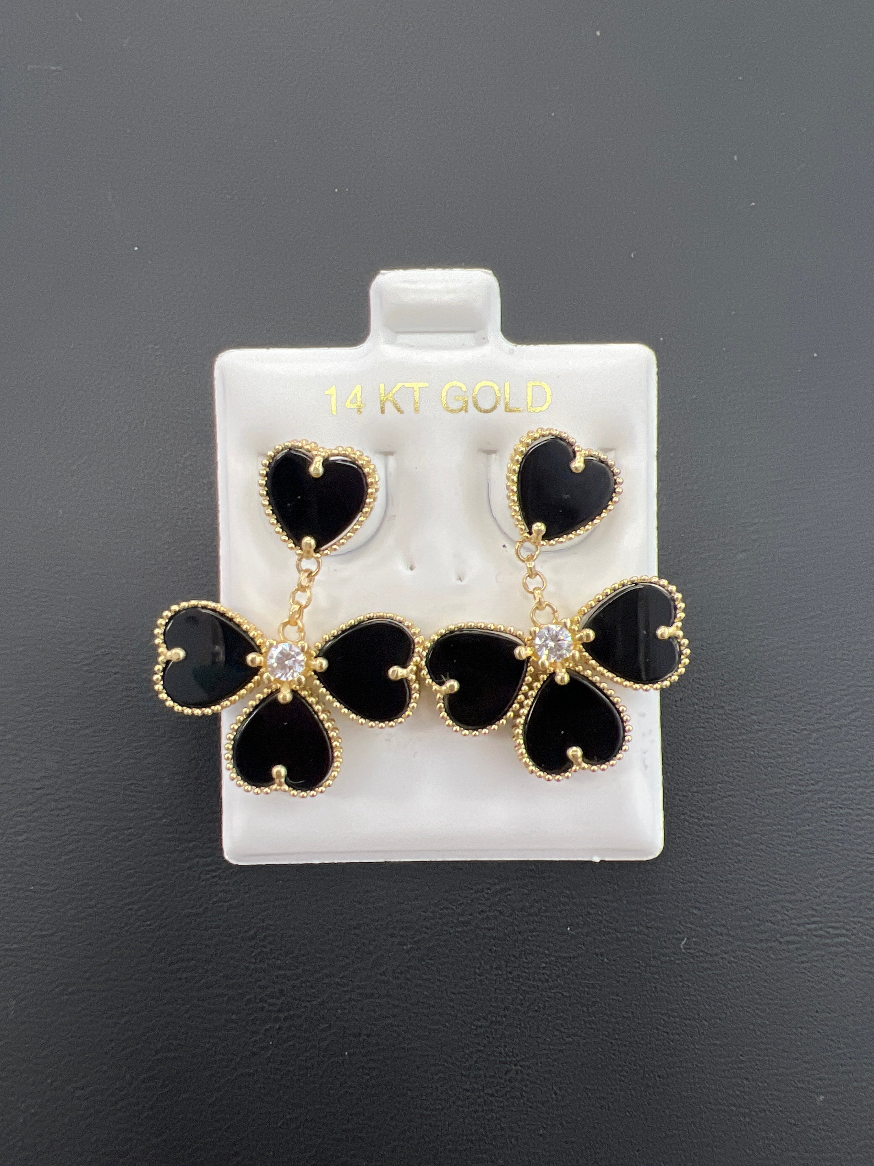 14k Earrings hanging black clover
