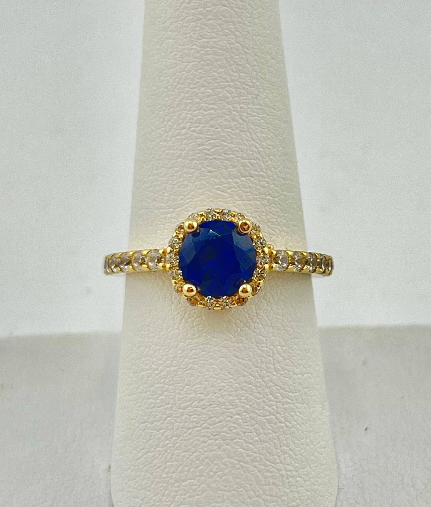 14k circle ring with big dark blue stone