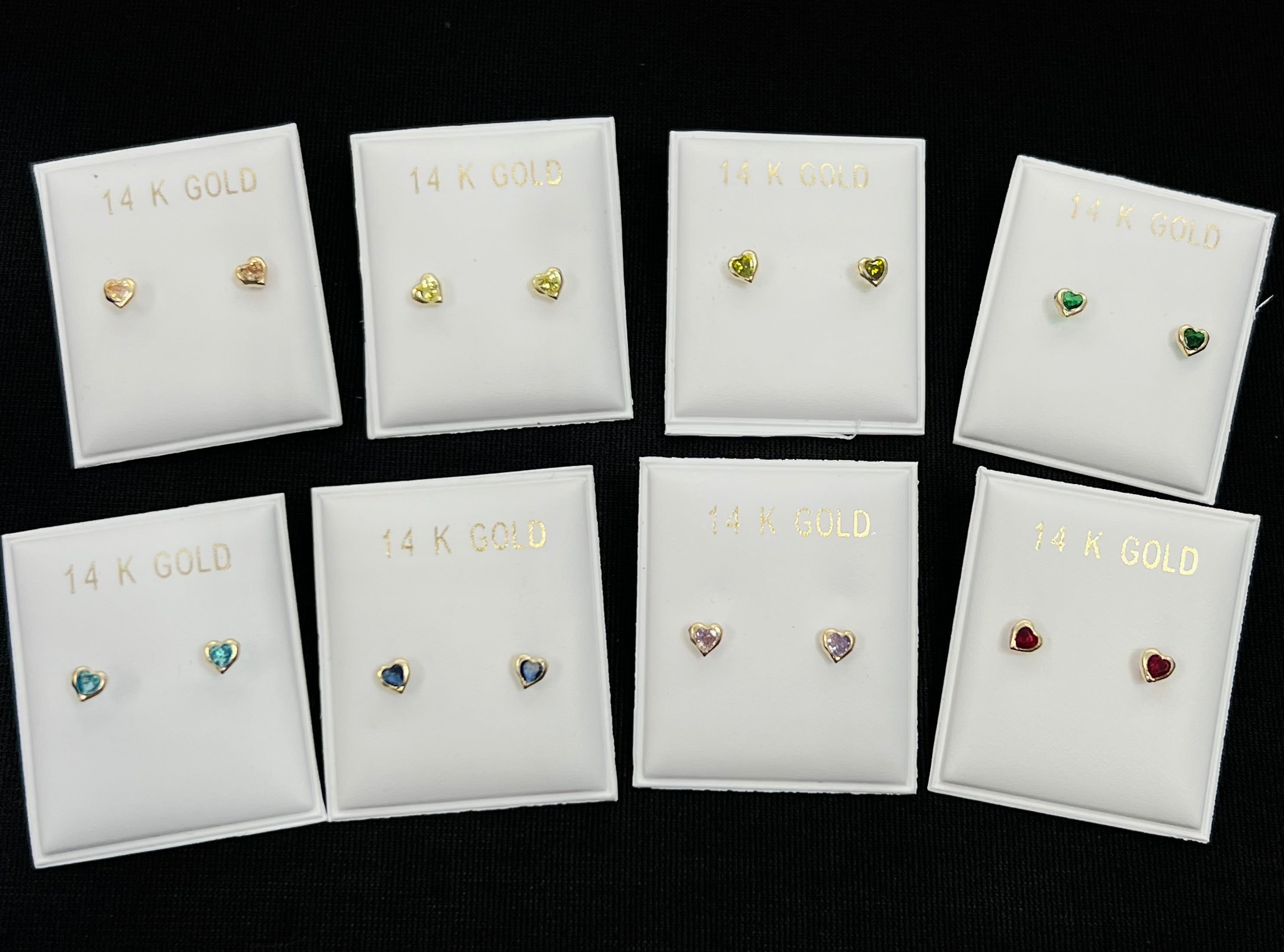 14k small colored heart stone earrings (call for available colors) ($40 each)