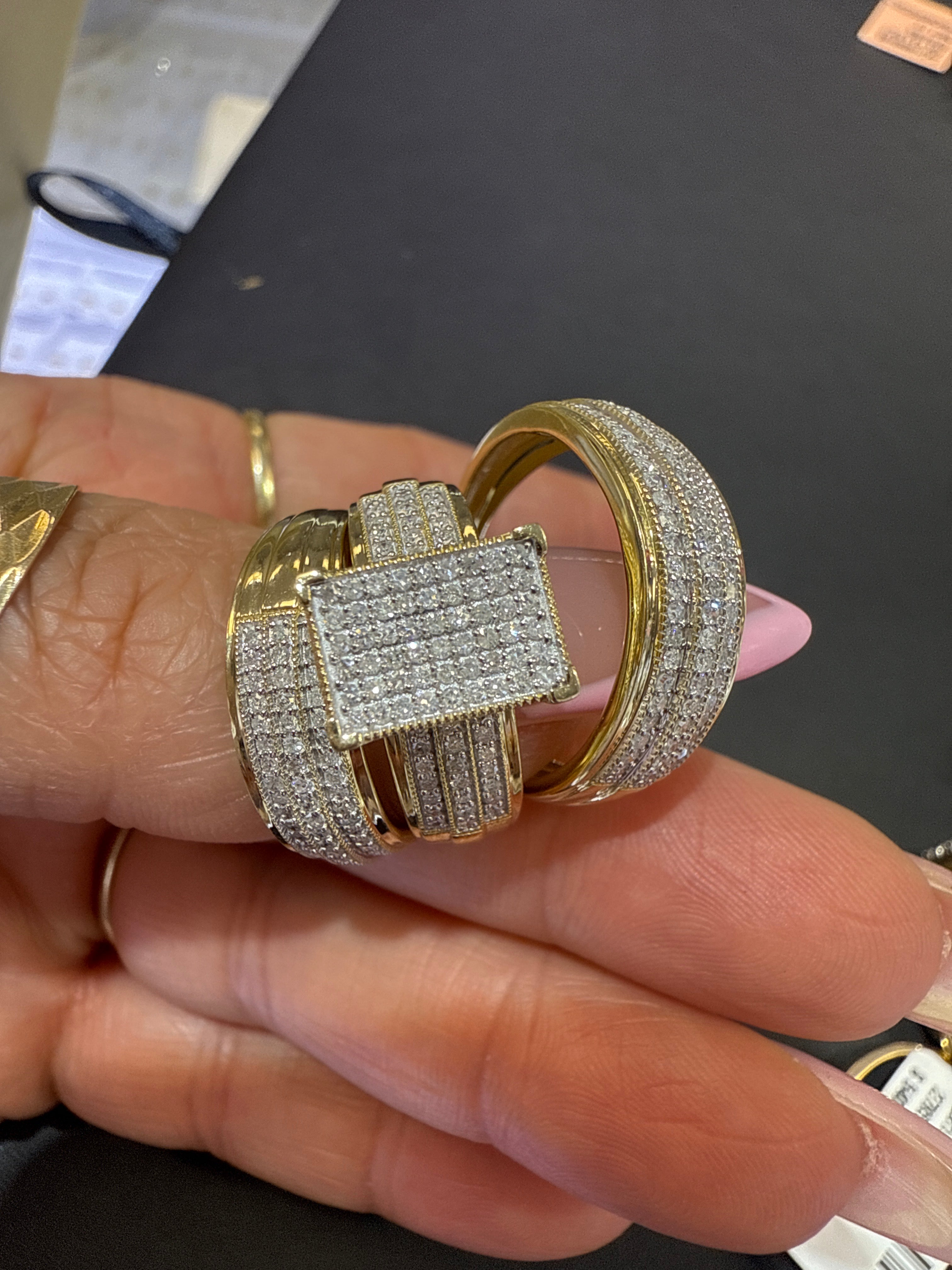 LADIES TRIO SET 1.00CT ROUND/BAGUETTE DIAMOND 10K YELLOW GOLD