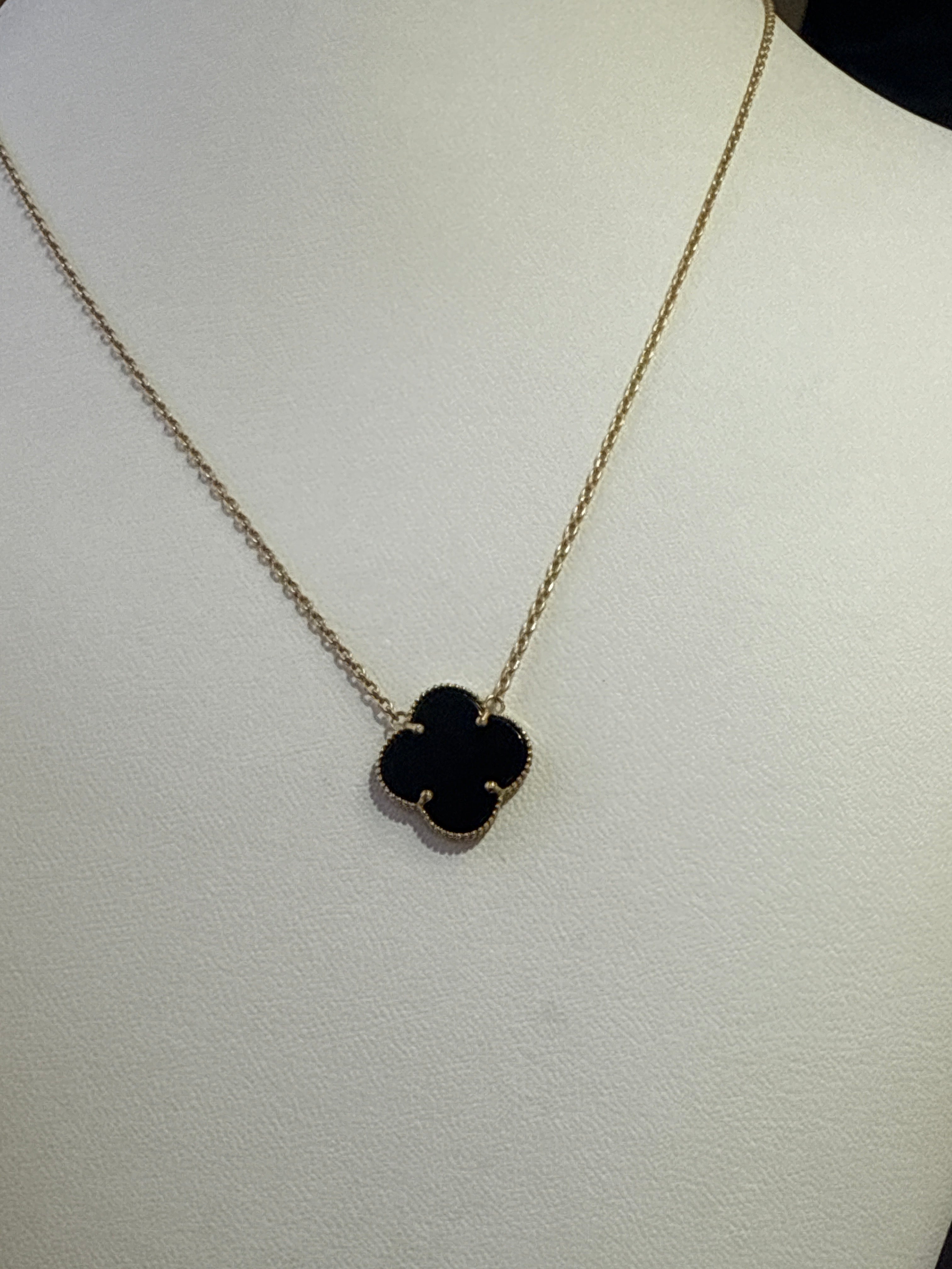 10k necklace clover black
